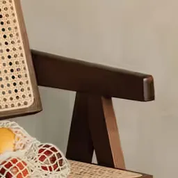 An example of loss of detail. Sighted users can tell this image contains a net of fruit on top of a chair — the features of this image persist. Albeit subtle, the wood texture on the armrest is lost in the AVIF and WebP images.